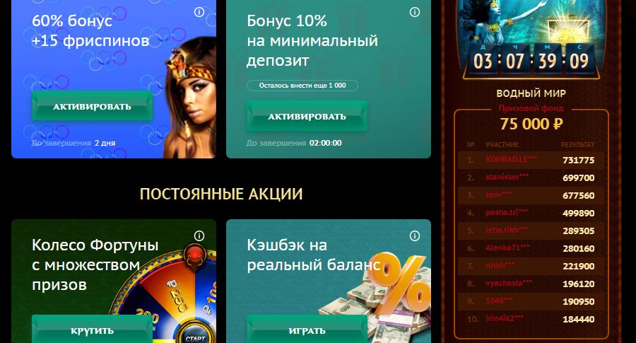 Также для некоторых гемблеров актуальной является тема бонусной политики клуба.